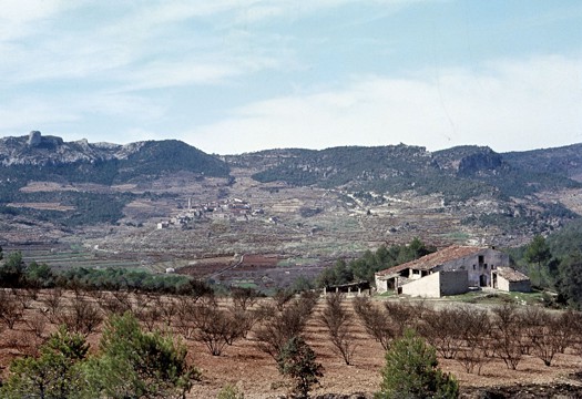 ![]() Panoràmica a pocs metres abans d'arribar al poble per la carretera d'Alcover. |