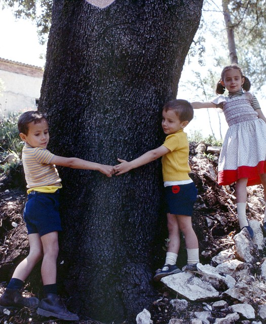 ![]() Els nets de l'autor d'aquest treball abraçant la soca per mesurar la seva mida a mijans dels anys 70. |