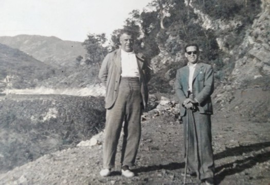 ![]() Josep Juanpere, fill del Mister, amb el Victorí Gravat. Es pot veure que encara s'estava treballant per fer el camí. |