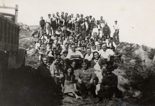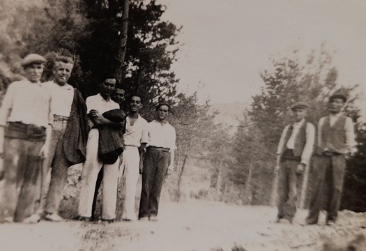 ![]() Es de quan es feia el camí. S'hi poden identificar el Joan Quico, el Javier de ca l'Enquino, el Josep Juanpere i el seu gendre, el quart per l'esquerra. |