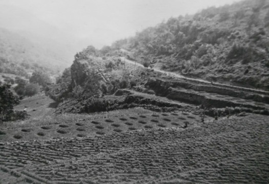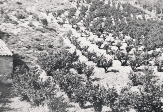 ![]() El conreu de regadiu de sota el mas. En dues parades si poden veure formiguers, una activitat destinada a regenerar la terra acabada d'artigar. Es la única foto que tenim de formiguers a Capafonts. |