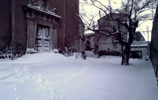 ![]() La Plaça de l'Esglesia durant la nevada del 1986. Fotografies: Albert Balanyà |