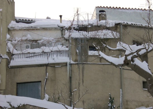 ![]() Aquesta fotografia feta dos dies després de la nevada mostra encara l'espectacular gruix de neu acumulada al carrer Abadia. |