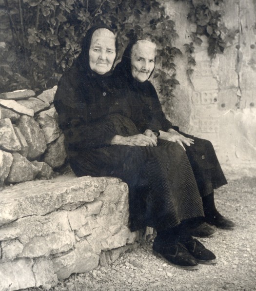 ![]() Dues germanes al pedrís de cal Blaió: la Cisca casada a cal Cerdà, en primer terme, i la Maria, a cal Forner. |