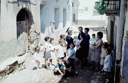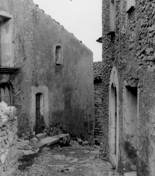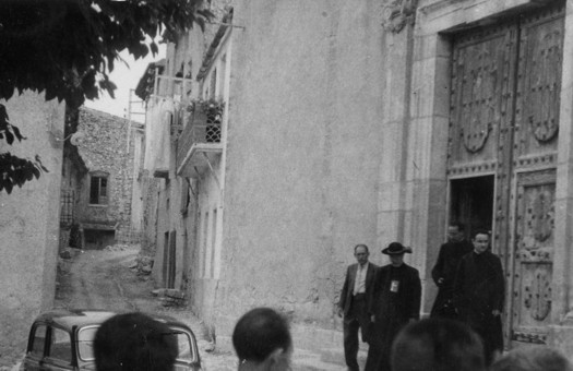 ![]() El carrer de les Fonts, amb els pedrissos de ca l'Agneta, cal Perelló i cal Ros, el dia de la visita del bisbe. Any 1962. |