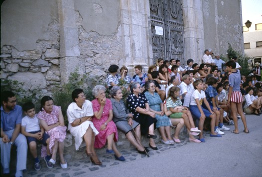 ![]() El pedrís davant l'Esglesia ple de gent durant un acte a la festa major de l'any 1988. |
