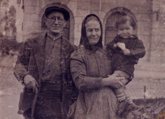 ![]() Cal Gravat i cal Canya. El Pep Canya porta el Baptiste Gravat als braços. A la porta la seva mare. |